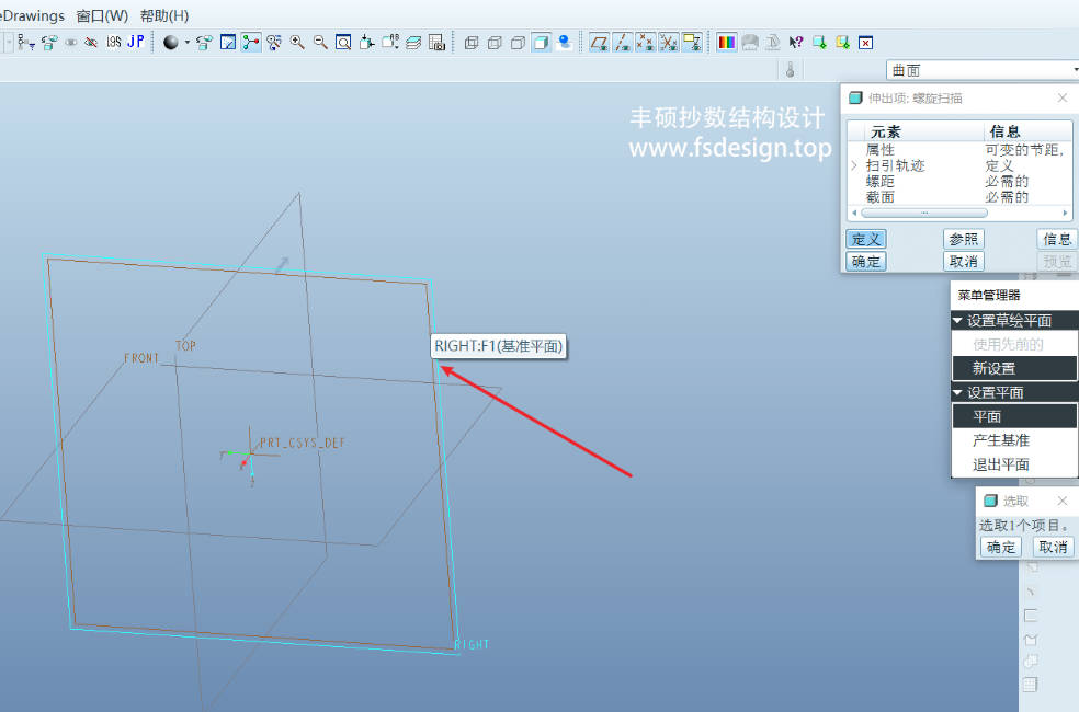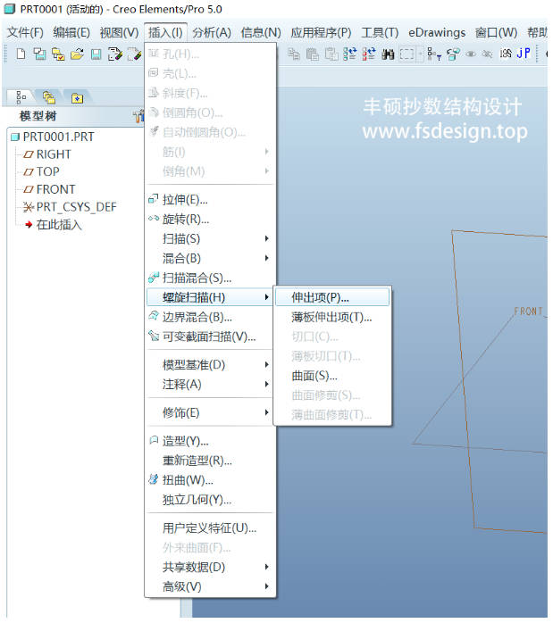 1,新建一个Proe模型文件,在插入菜单找到螺旋扫描-伸出项;