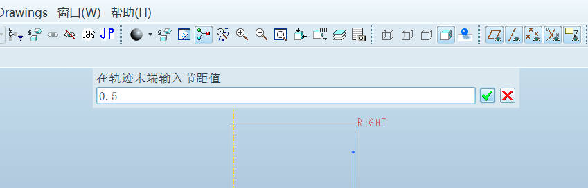 6,按提示输入轨迹末端位置的螺距0.5后打勾确定;