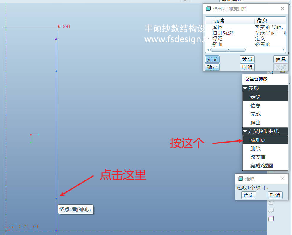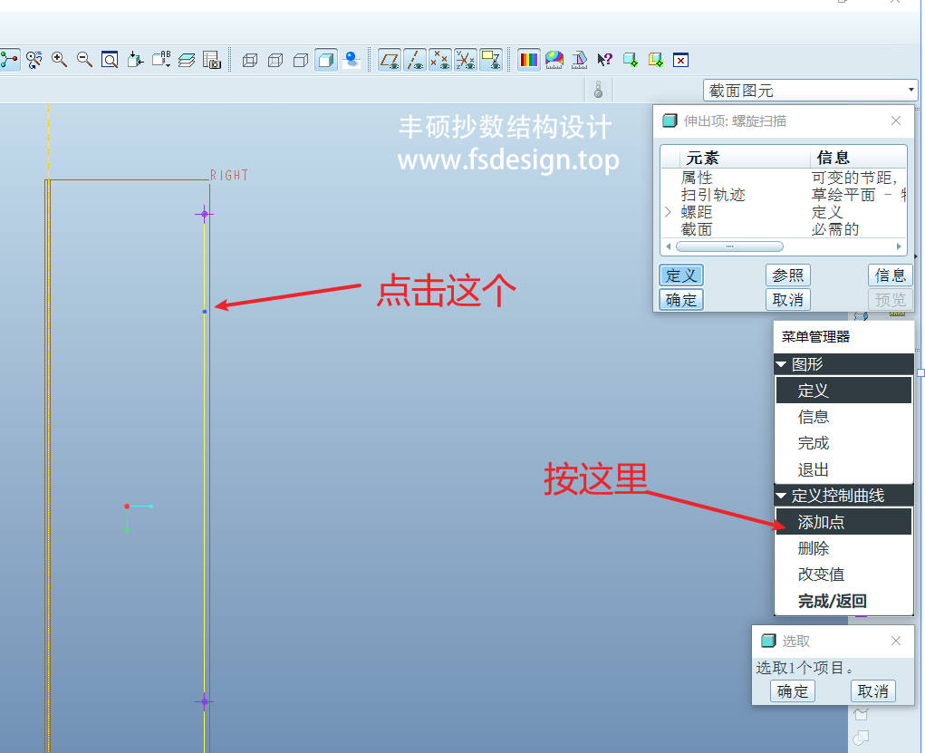 9,选择添加点,点击箭头所指的点输入其可变螺距的值;