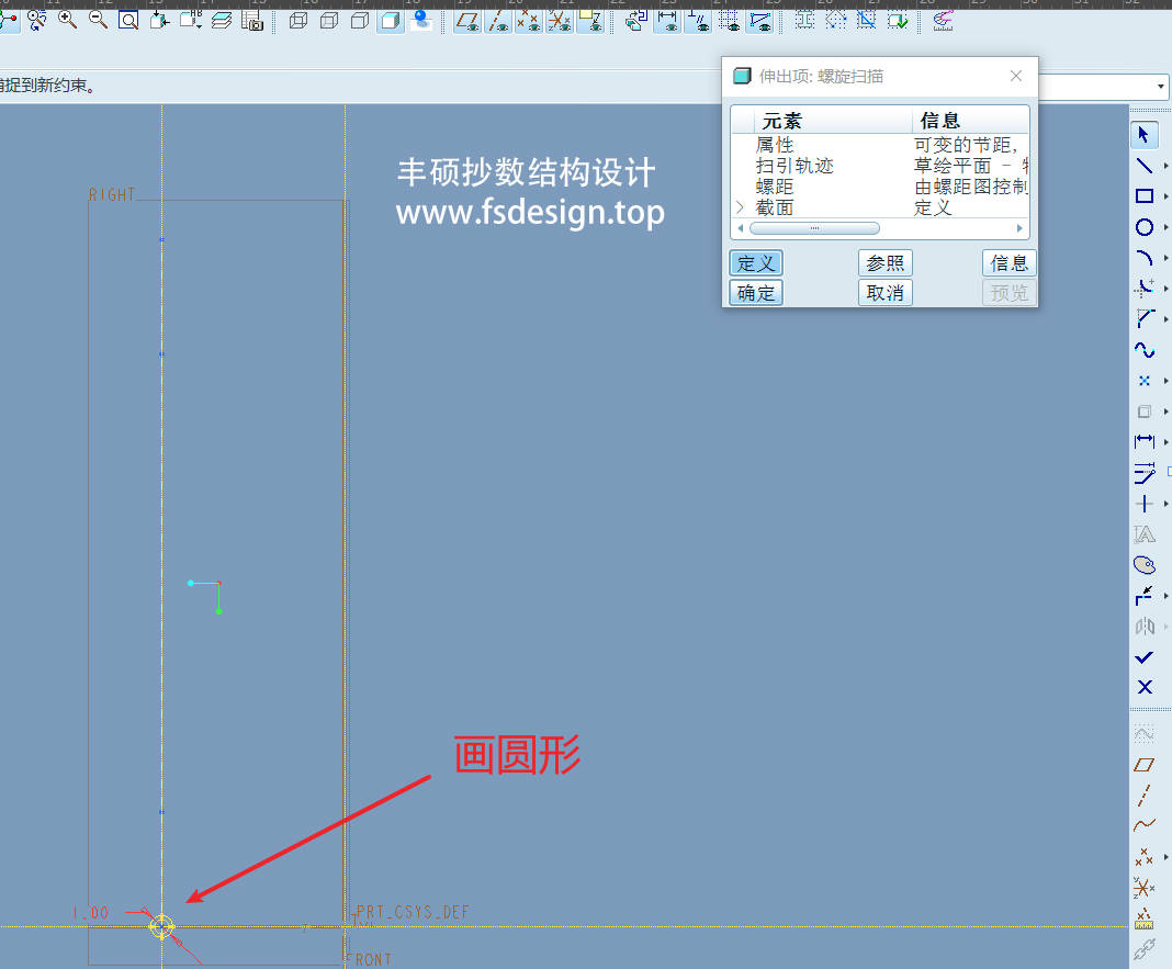 11,用proe绘制弹簧的截面,如图所示,绘制圆型;
